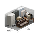 16 sq ftEquivalent in size to a double wardrobe. Can fit roughly 15–20 medium-sized boxes. 50% discount first 2 months